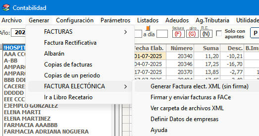 generar las facturas con número y fecha pero sin enviarlas (sin generar