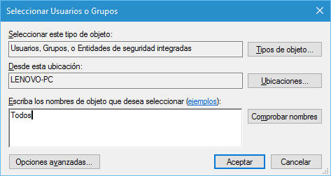 permisos Control total, Cambiar y Leer.