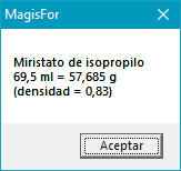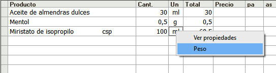 Aunque el miristato está expresado en ml, selecciona el menú "Peso"