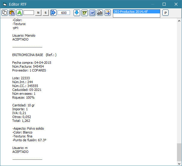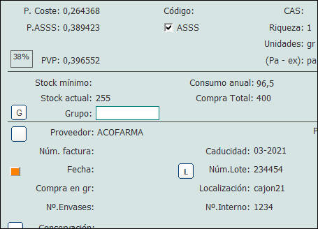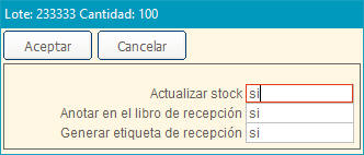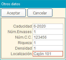 lote, número interno, precio, caducidad, etc. Es lo mismo que pulsar el