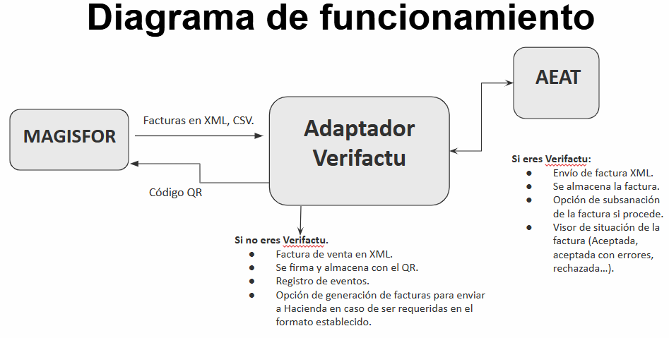 Este es el proceso completo VeriFactu o NoVeriFactu en Magisfor (excepto para Álava, Guipúzcoa y Vizcaya):