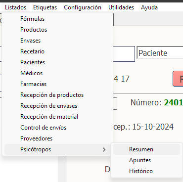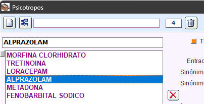 Esto no es necesario que lo haga desde aquí, ya que Magisfor lo hará de forma automática cuando una fórmula contenga uno de los productos cuyo campo "Psicótropo" (en PRODUCTOS) tenga una de las letras e, s, c.