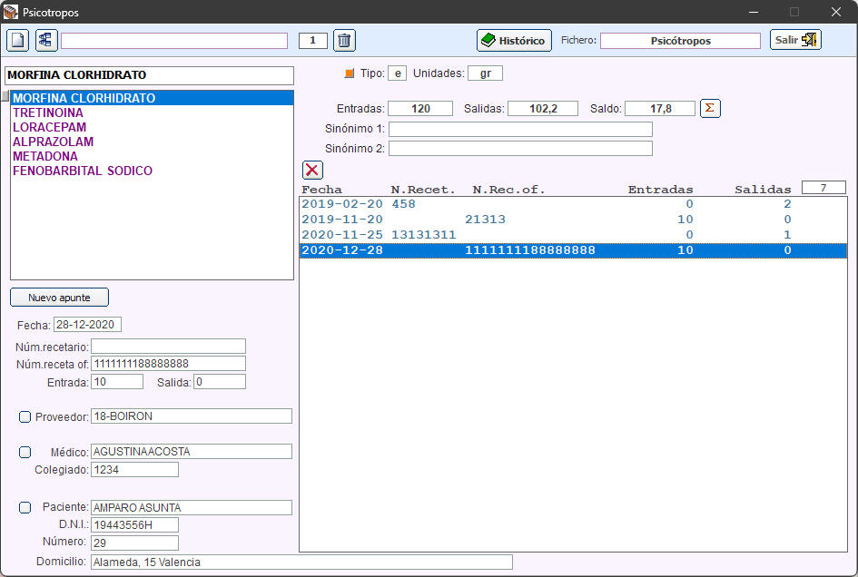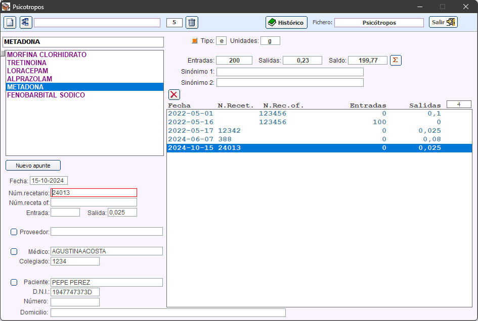Y se actualiza el stock en el módulo de PSICOTROPOS. (En PRODUCTOS ya se actualizó el stock cuando valoró la fórmula).