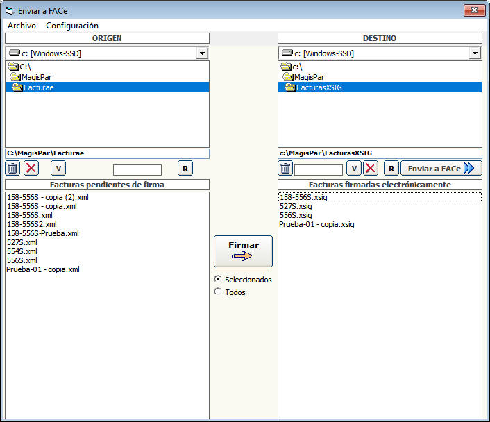 generará un XML que guardará por defecto en la carpeta C:\MagisPar\Facturae