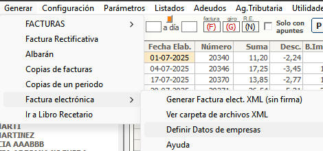 Menú Generar =>Factura electrónica