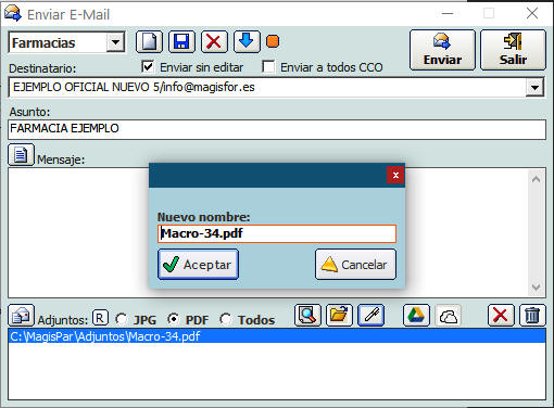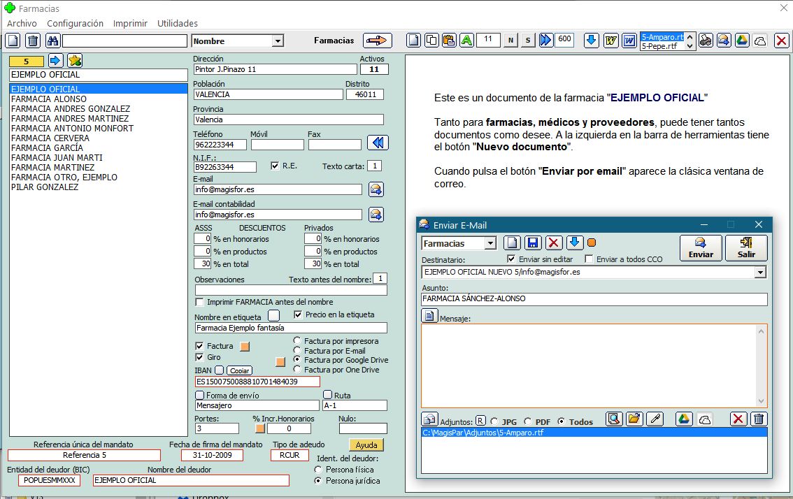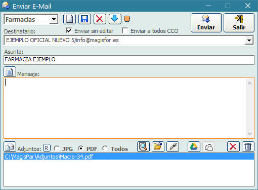 automáticamente con los datos de la farmacia cliente.