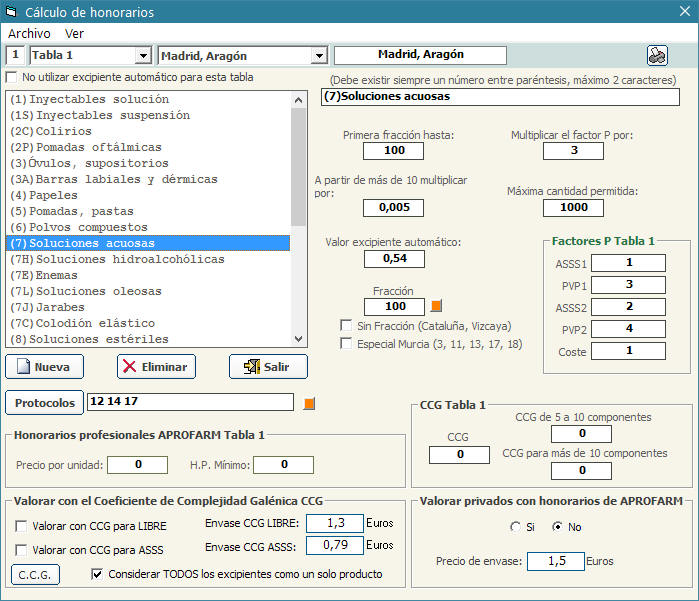 (Coeficiente de Complejidad Galénica) solo es válido en