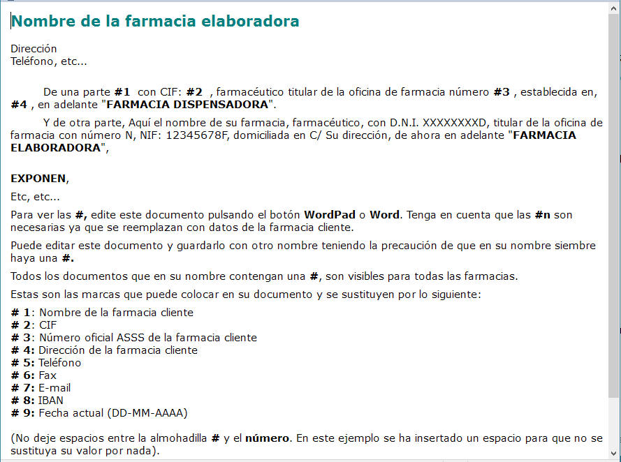 otro documento que quiera compartir con todas las farmacias) ha de contener el