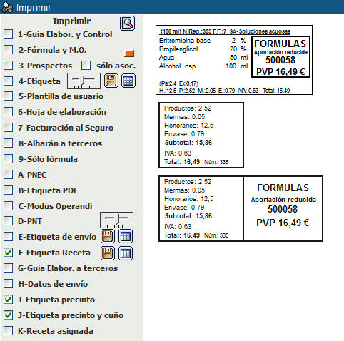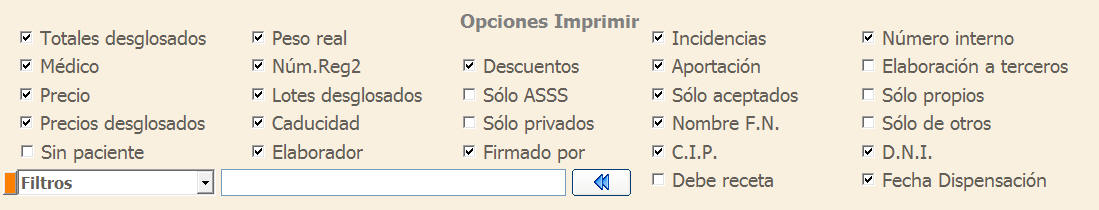 Opciones de impresión de Elaboración a