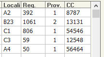 columnas: "Localización", "Peso Real", "Proveedor"