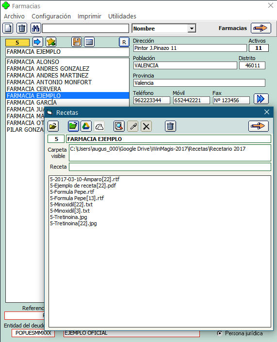 "Farmacias" que está dentro de la carpeta
