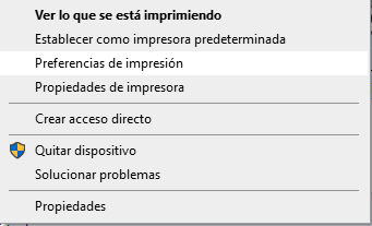 vertical: Clic con el botón derecho sobre el icono de la impresora y selecciona "Preferencias de impresión"