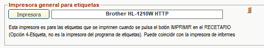 Otra ENORME ventaja de tener una impresora de etiquetas, es la posibilidad de imprimirlas sin necesidad de guardarlas ni de ir al programa de etiquetas. Desde MagisFor cuando pulsamos el botón IMPRIMIR en la barra de herramientas de la carpeta Recetario, pueden salir los informes por una impresora, y las etiquetas por otra. Si imprime desde aquí las etiquetas ha de tener en cuenta que MagisFor utilizará el tamaño de letra que usted haya definido en: