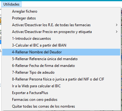 Menú Utilidades => rellenar nombre del deudor de todas las farmacias