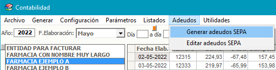 2-Menú Adeudos => Editar adeudos SEPA. Aparecerá el programa para generar los adeudos.