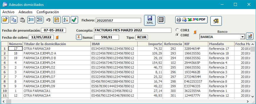 Generar el fichero de adeudos directos SEPA para el Banco:
