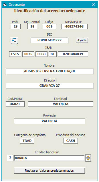 Todos estos datos irán en la cabecera del fichero de adeudos SEPA y es fundamental que estén todos correctos.